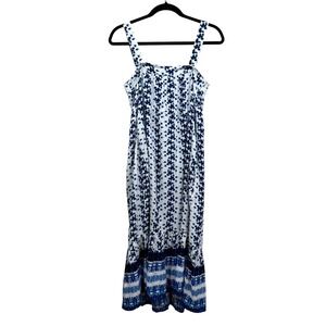 Beachlunchlounge Collection Women's Blue White Floral Tie Dye Midi Dress XS NWT