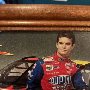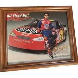 NASCAR Jeff Gordon All Fired Up Framed Photo. 8x10 colored photo. Frame has some scratches. Temp02