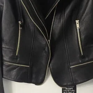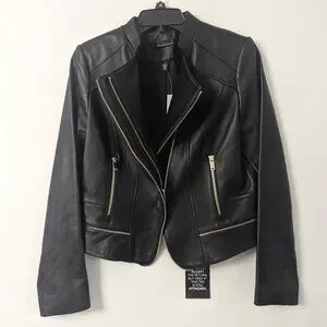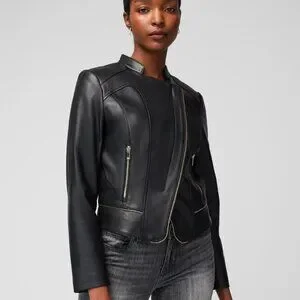 WHBM $500 GENUINE LEATHER Zipped Moto Jacket Black Soft 2 6 8 10 14