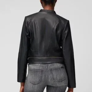 Long lasting and worn for a variety of occasions, the Leather Moto Jacket is one you'll have for years to come. With a gold metal zipper front closure, shoulder pads and an asymmetrical zipper opening, this moto jacket can be worn year round as an added layer or final layer for a model-off-duty moment.