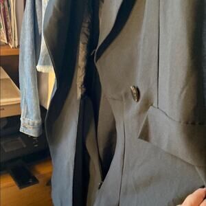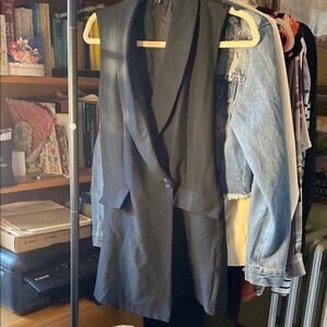 Elegant black sleeveless jumpsuit. Features a deep V-neck and button detail. Perfect for a stylish look. Front pockets just for show.
