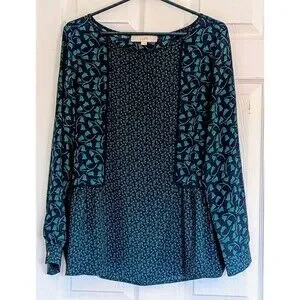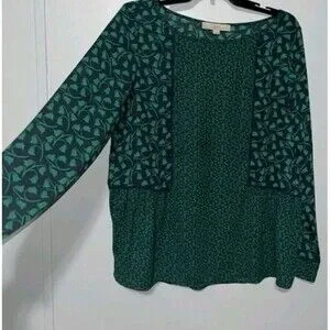Loft Green and Navy Layered Look Long Sleeve Blouse Size Med