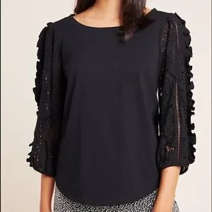 Anthropologie Nina lace sleeves Top size Small balloon sleeve 100% cotton
