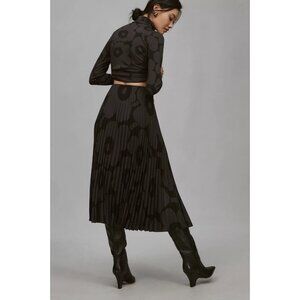 NWT marimekko Kyllikki Unikko Plissée Midi in Black Gray Floral Pleated Skirt S