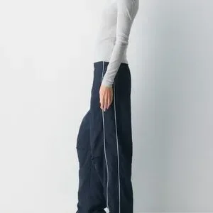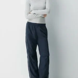 Comfortable navy track pants with elastic waist for easy wear. These fit SUPERCUTE and sold out at Aritzia.