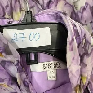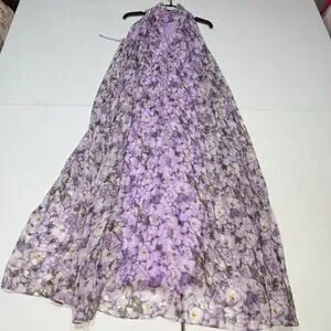 Badgley Mischka Floral Mock Neck Pleated Gown Purple Maxi dress Size 12