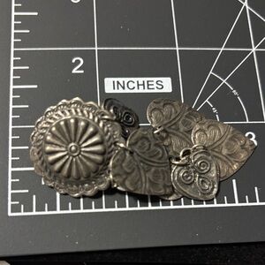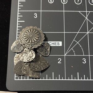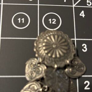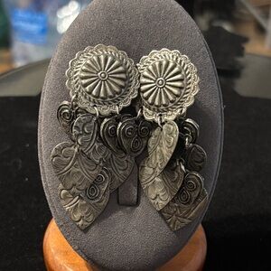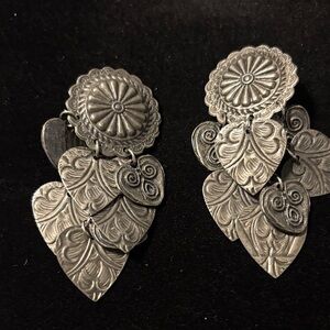 Waterfall Cha cha pressed heart earrings. Center piece Concho. Clip on earrings see photos..