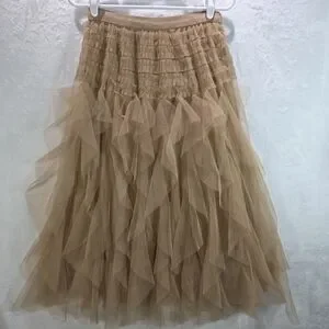 Elegant Tan Tiered Layered Tulle Skirt Size Large NWOT