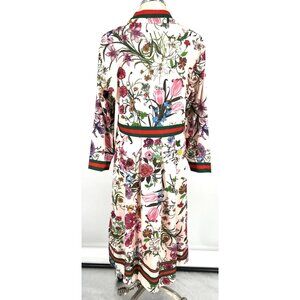 Lai Meng Five Cats Dress Floral Maxi Sz 14 Insects Butterflies Pleated Long Sleeve NWT