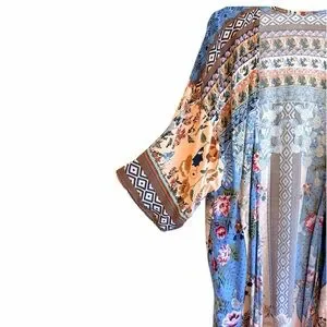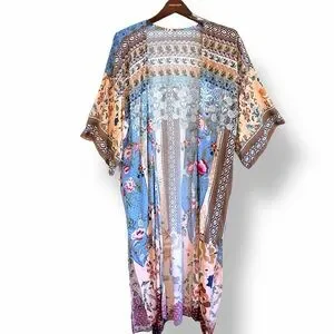 Bohemian Kimono duster, colorful print, midi length, one size fits most