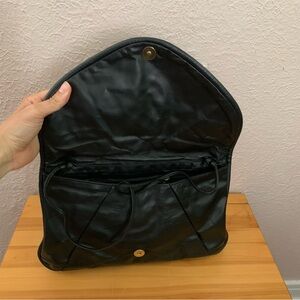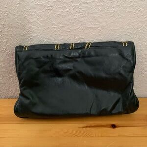 Vintage black leather clutch or crossbody purse with french coins