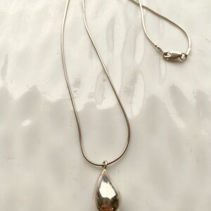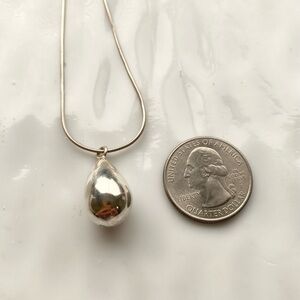 Elegant sterling silver teardrop pendant on a smooth silver chain. Minimal, versatile design that pairs well with everyday and dress looks. Lightweight and polished for a refined finish. Includes secure lobster clasp for easy wear.
