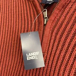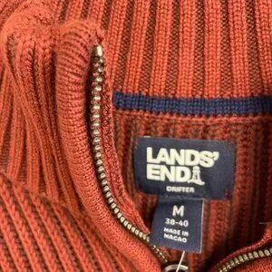 NEW Lands’ End Men’s M Ribbed Knit Sweater Mock neck Red Rust 100% Cotton