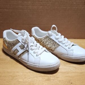Tommy Hilfiger White Sneakers with Gold Glitter Panels