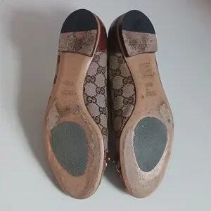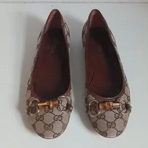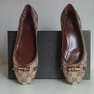 Gucci Tan Logo Canvas Flats In Box W Bamboo Bit.