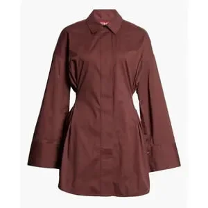 Crafted of stretch cotton, the Cindy shirt minidress from Staud is styled with a spread collar, long sleeves, and button-front closure.