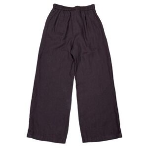 Lintico 100% LInen Wide Leg Trousers Womens S (26x27) Brown Button Front Pleats