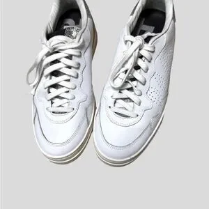 Upper: Smooth white leather with a signature perforated "P448" logo on the side.