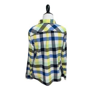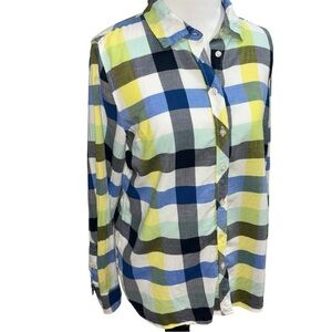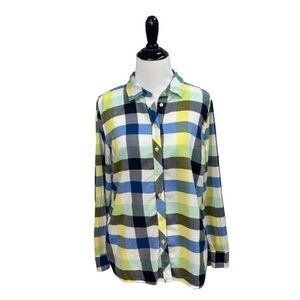 Talbots Women's Button Down Shirt in Size Petite Medium. Colorful Plaid Pattern. Fitted, Long Sleeves, the fabric is 100% Cotton. Good Condition.