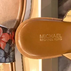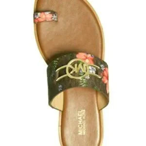 Features a flower print and wide band while a toe-ring accent completes the "Tracee" sandals from Michael Michael Kors with cool gladiator appeal.