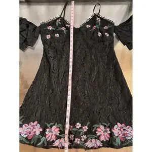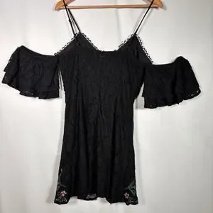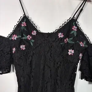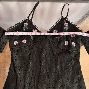 Lulumari Babydoll Dress Womens Large Sheer Lace Overlay Floral Cottage Fairy Off The Shoulder