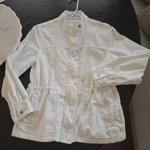 J.Crew white Utility jacket Cinch Drawstring PM Coastal Preppy Spring Summer EUC