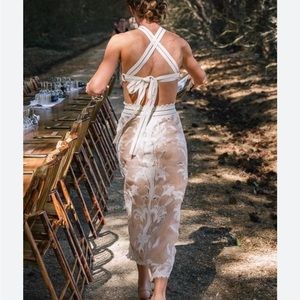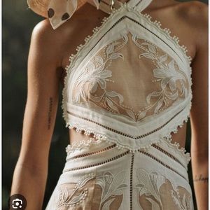 Zimmermann Corsage Lily Silk Linen Floral Appliqué Halter Dress