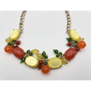 TALBOTS Thermoset Plastic Fruit Salad Bib Necklace Gold Tone Multicolor