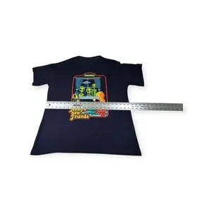 Keywords: ROMWE, graphic tee, t-shirt, alien, UFO, Jenny's new friends, short sleeve, casual, novelty, retro, cartoon, men's fashion, crew neck, S, blue