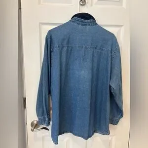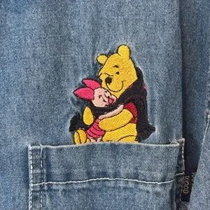 Vintage Disney Pooh Denim Button-Up Shirt with Embroidered Winnie the Pooh