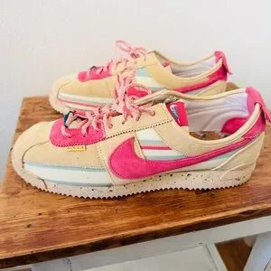 Nike x Union Cortez Collab Sneaker Shoes Cork Like Bottom Pink Blue
