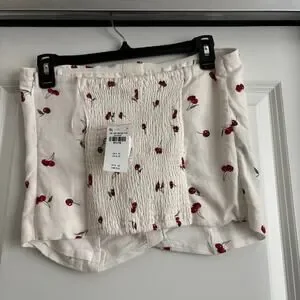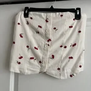 NWT Abercrombie & Fitch Strapless Cropped Tailored Vest Top Cherry Print M