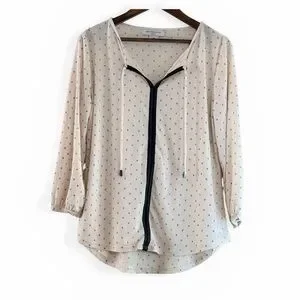 Liz Claiborne Petite PM Cream Diamond Print Tie-Neck Blouse Top