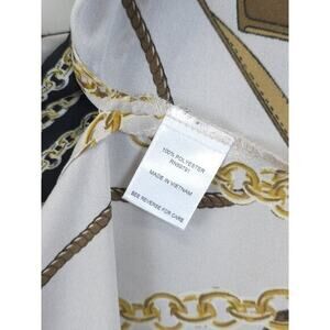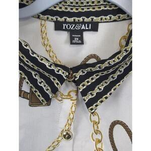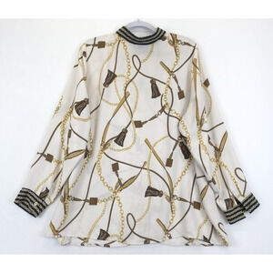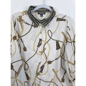 Roz & Ali Blouse Chain Print Button Front Women 2X Beige Gold Equestriancore