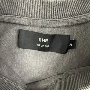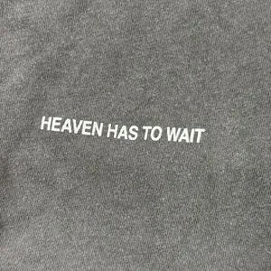 Gray oversized knit sleeveless muscle tank with white and pink graphics.