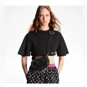 The Louis Vuitton Bubblegram Wallet on Strap is crafted from soft, embroidered calfskin and is designed for versatility. It typically includes both a removable gold-tone chain for elegant evening wear and a sporty nylon strap for a more casual crossbody look. The interior is generally lined with microfiber and includes card slots and a zipped pocket.