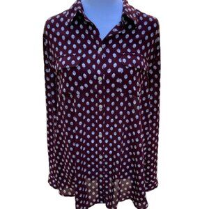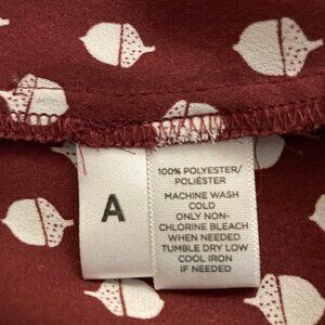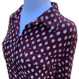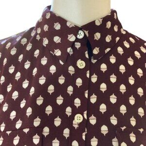 Ann Taylor LOFT Acorn Print Button Down Shirt Cranberry, Size Long Torso, Medium