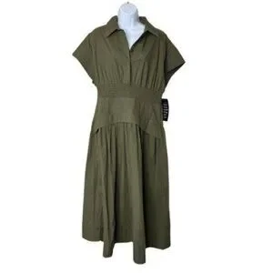 Tuckernuck Cameran Army Green Collared A-Line Midi Shirt Dress Size M NWT