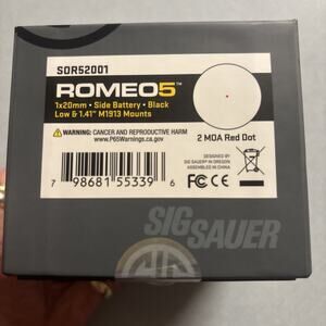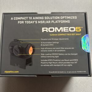 The SIG SAUER Romeo5 Compact Red-Dot Sight (SOR52001) is a high-quality optic designed for various firearms including handguns, shotguns, and rifles. It features a 2 MOA dot reticle in red, with a 20mm objective lens diameter and fully multicoated lens for clear and precise aiming. Constructed from lightweight aluminum, this sight is shockproof, waterproof, and illuminated for improved visibility in low-light conditions. With a Picatinny mount for easy attachment, this red-dot sight is a reliable and versatile accessory for enhancing your shooting experience.i opened the box to call the company , to make sure it was not counterfeit. Sig Sauer has confirmed the serial number as well as pictures of the item ,