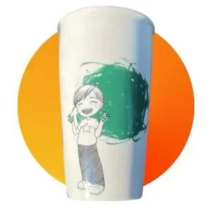 Starbucks 2015 Dot Collection Green Finger Paint Boy Ceramic Travel Mug 12oz