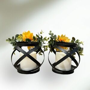 Set of Small Metal Battery Operated Candle Holders W/Sunflower Mini Centerpieces