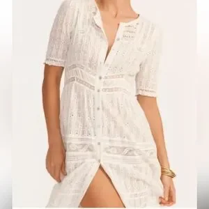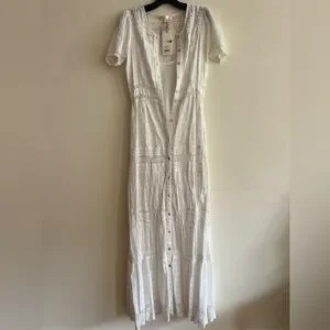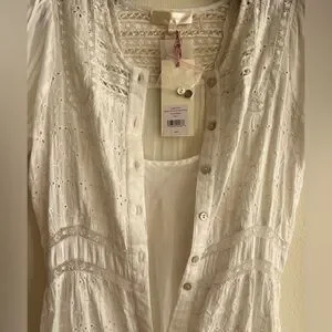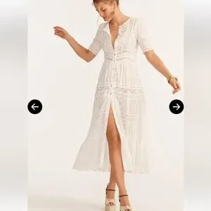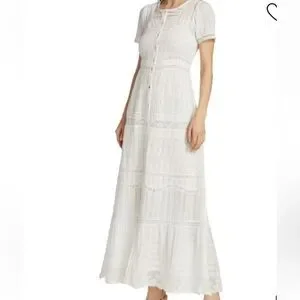 NWT $ 595.00 Medina Victorian Maxi Dress, true white , 2 pc . Size: 2 . Measurements approximately: length 57,5” , underarm 16” , sleeve 8” . I took tag but I never used this dress. White dress with lace overlay. Features button details and delicate straps.