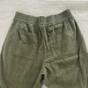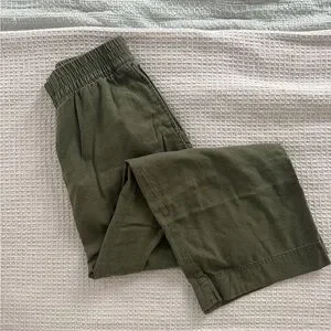 Stylish olive pants with a high-rise fit. Features a comfortable elastic waistband. Ideal for casual outings.