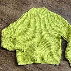 American Eagle Outfitters Neon Lime Cable Knit Mock Neck Sweater