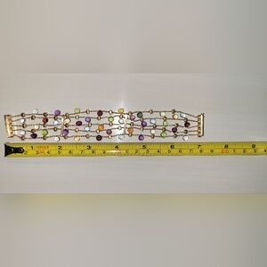 18K Yellow Gold 5-Strand Gemstone Bracelet, Mixed semi precious stones, Gold Accents.