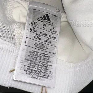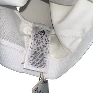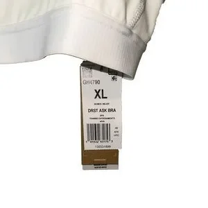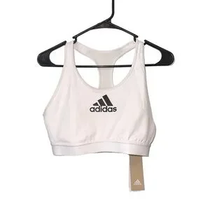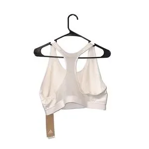 White Adidas sports bra with supportive design. Material is lightweight and has some stretch to it.