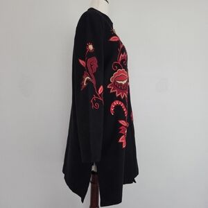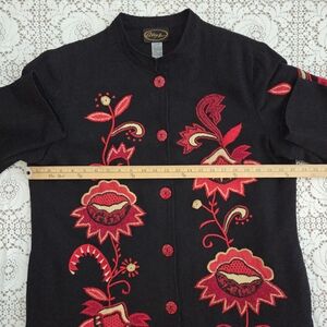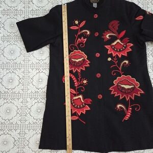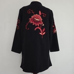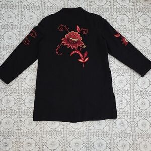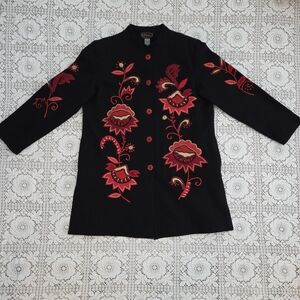 Vintage Alex Kim Black Jacket with Red Floral Embroidery Size Large