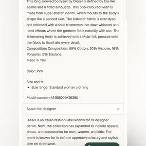Brand new with tags Diesel metallic sculpted bodysuit — a striking designer statement piece with a structured bustier silhouette and sleek long sleeves.