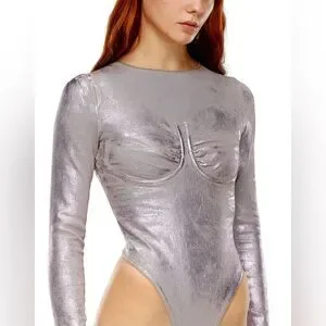 Diesel Metallic Bustier Bodysuit NWT | Sculpted Cup Long Sleeve Statement $695