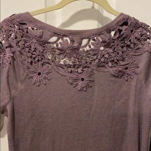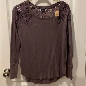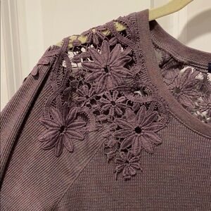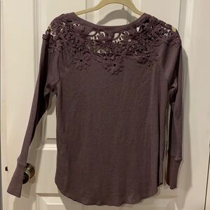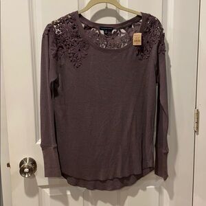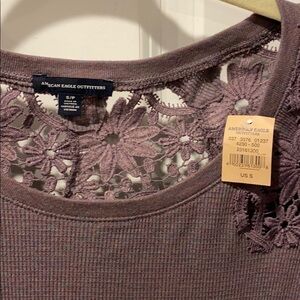 NWT from smoke free home- size small American Eagle waffle textured long sleeve with gorgeous embroidery across shoulder. Purple but subtle additional colors. Embroidery is all purple. This fits like a medium. Super soft, beautiful lightweight top. Shirttail hem, crew neck.